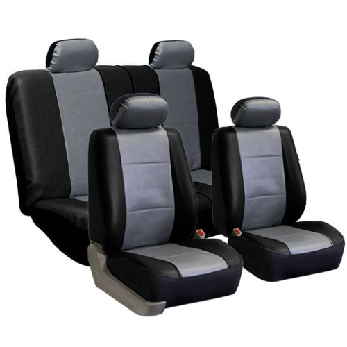 FH-PU005114 Exquisite Leatherette Seat Covers Front Airbag Compatible Rear Split Gray / Black here