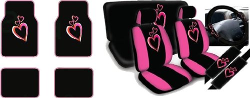 15pc Love Story Combo Seat Cover Set with Front Seat Covers, Head Rest Covers, Steering Wheel Cover, Shoulder Pads, Bench Cover and Carpeted Floor Mats here