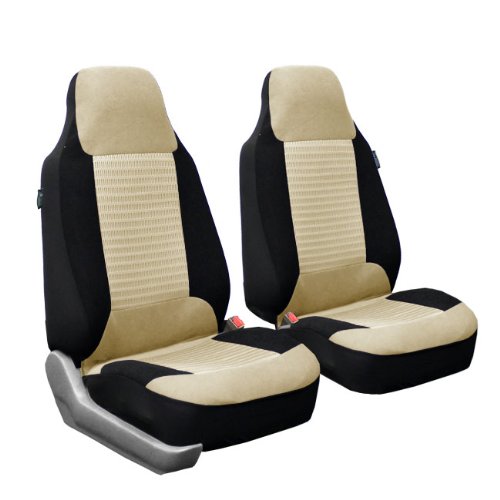 FH-FB107102 Trendy Corduroy Bucket Seat Covers, Airbag compatible and Split Bench, Beige / Black color here